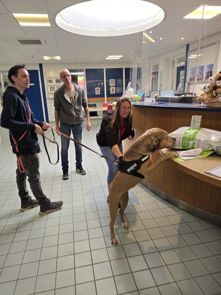 Wij hebben een Amerikaanse stafford reu “Djeko “van 8 jaar ondertussen, die wij van pup af aan hebben. Djeko is na 1,5 jaar opgegroeid met een Amerikaanse stafford teef Djana die wij ook van pup af aan hadden. Djana is helaas overleden en mocht maar 6,5 jaar worden. Wij en zeker Djeko misten haar aanwezigheid enorm. Omdat wij jaren 2 honden hebben gehad ging het toch enorm kriebelen om er een tweede hond bij te willen. Omdat wij geen pup wilden maar een wat oudere hond voor Djeko, hebben wij besloten om een hond die goed bij Djeko zou passen te adopteren bij het Haags Dierencentrum. We namen een kijkje op de website…