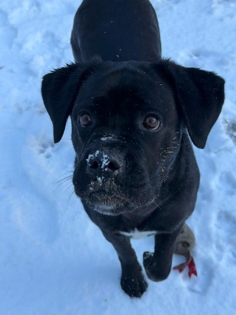 Ondanks dat het vertrouwen naar sommige van ons groeide, zit de angstige aanleg nog wel steeds in haar. Wij denken dat Angel een kruising Cane Corso is, misschien zit er ook iets van Boxer of Labrador in. Maar hoe langer zij in de kennel zat, hoe meer zij haar eigen plek/kennel begon te verdedigen. En aangezien het haar in de asielomgeving lukt om mensen weg te jagen als zij uitvalt, is dit gedrag in de kennel, op het veld en buiten naar mensen ernstiger geworden. Natuurlijk zijn wij haar aan het leren dat zoveel mogelijk mensen leuk zijn en te vertrouwen zijn, maar wegens tijdgebrek kunnen wij haar niet de zekerheid geven die een zelfverzekerde eigenaar haar zou kunnen bieden.