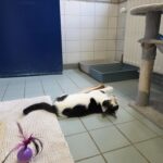 Helaas, bij Ben verliep de castratie iets anders gepland dan gehoopt. De wond raakte ontstoken. Een periode van (weer) antibiotica volgde. Ondertussen was er gelukkig wel een kamer vrij waar ze met zijn drieën dag en nacht los konden lopen om hun energie kwijt te kunnen en te ontdekken dat het leven uit meer bestaat dan een hok met kattenbak, kleedje en speeltjes. Tevens bleek dat er iemand elke keer op kleedjes plaste ….