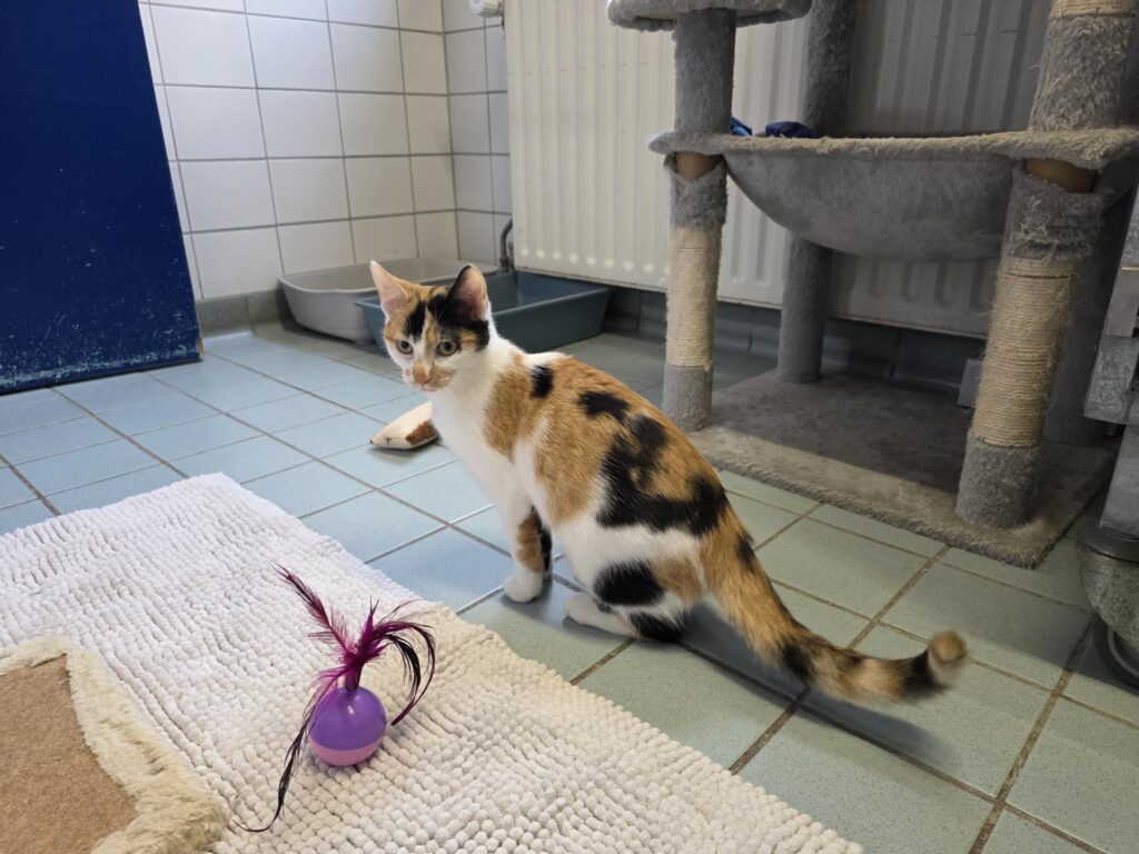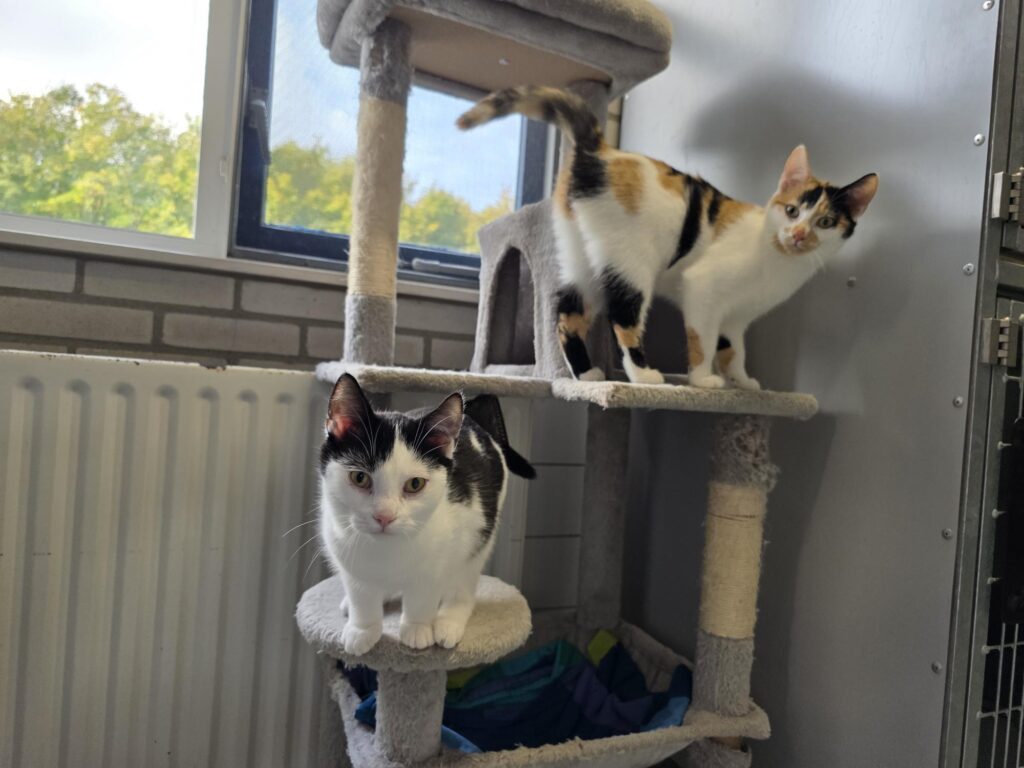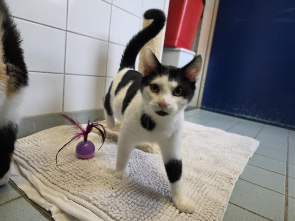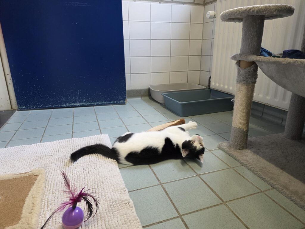 Helaas, bij Ben verliep de castratie iets anders gepland dan gehoopt. De wond raakte ontstoken. Een periode van (weer) antibiotica volgde. Ondertussen was er gelukkig wel een kamer vrij waar ze met zijn drieën dag en nacht los konden lopen om hun energie kwijt te kunnen en te ontdekken dat het leven uit meer bestaat dan een hok met kattenbak, kleedje en speeltjes. Tevens bleek dat er iemand elke keer op kleedjes plaste ….