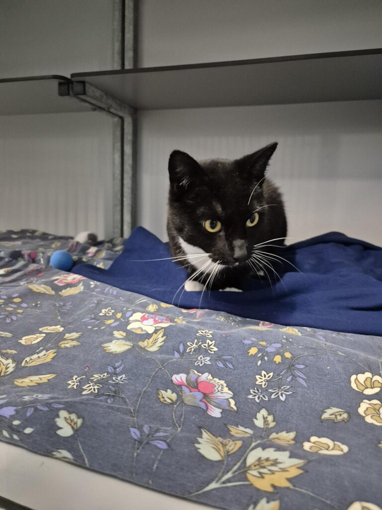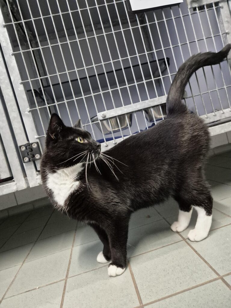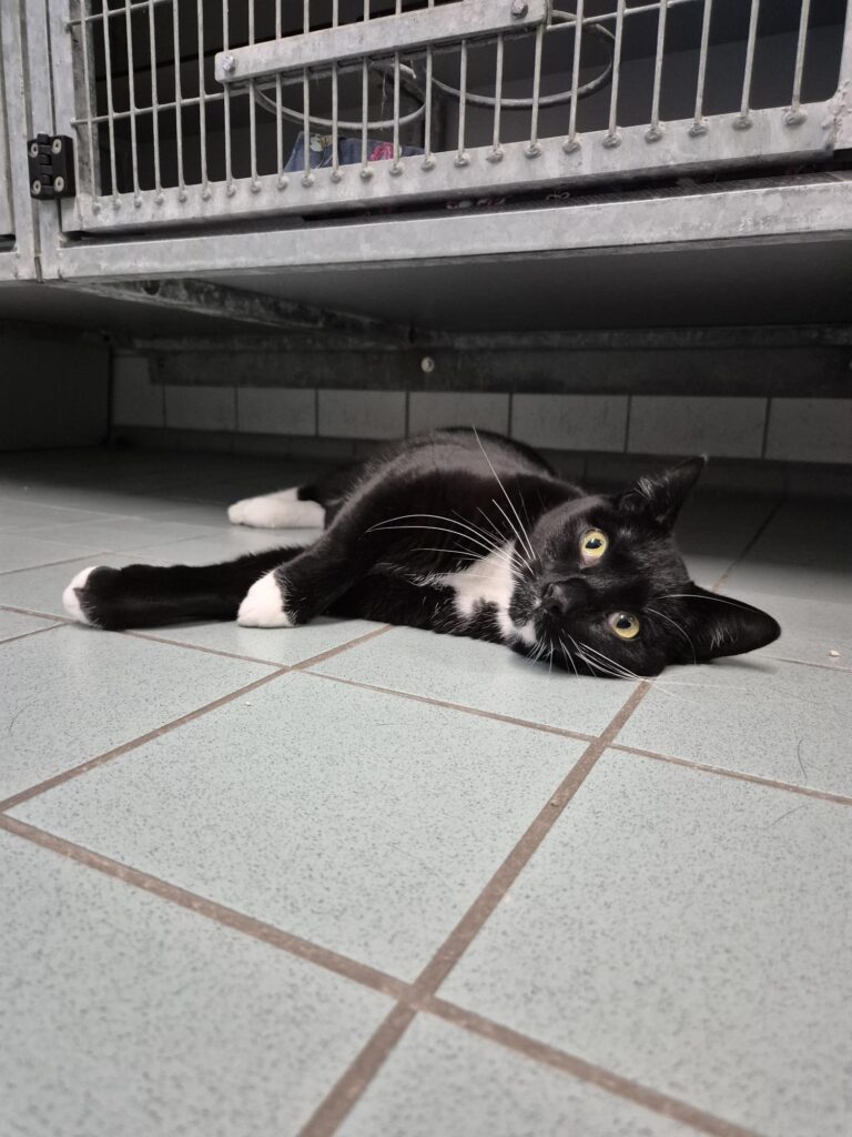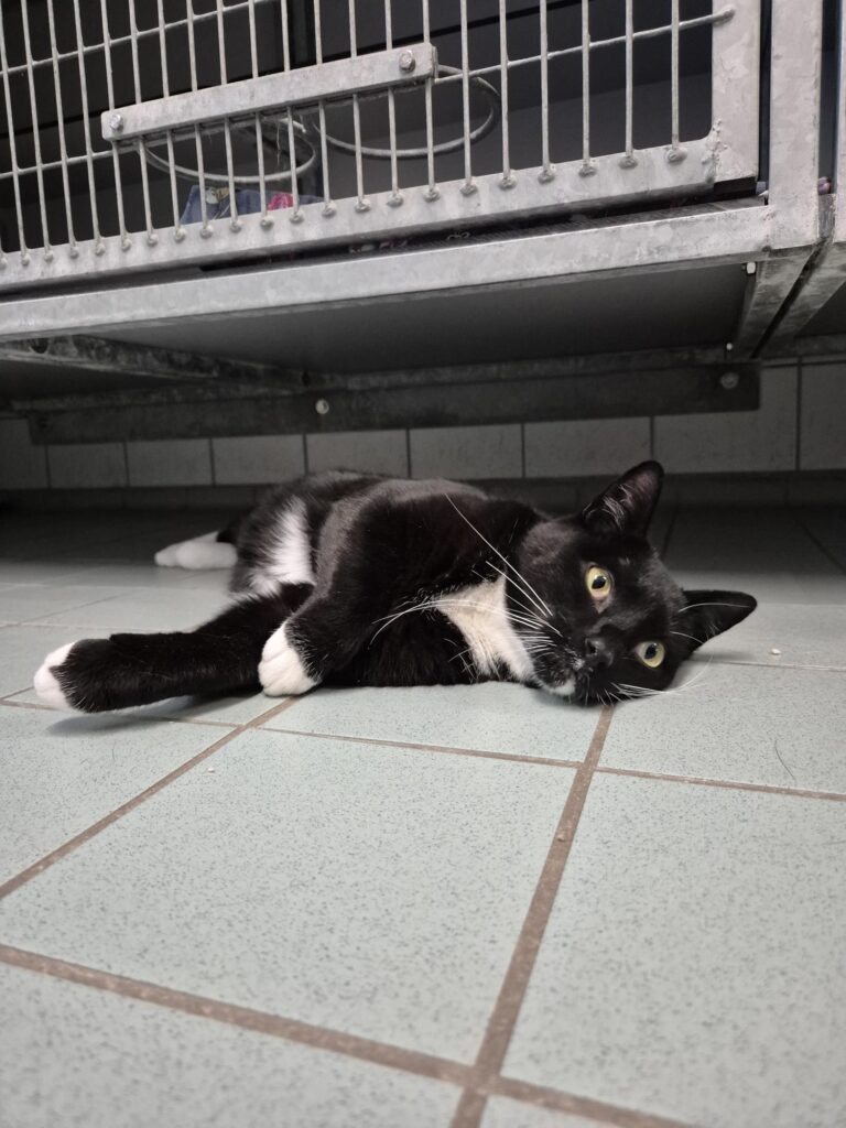 Dali vond het in het begin in het asiel erg spannend. Hij verstopte zich achter zijn kattenbak. Al snel had hij door dat het toch niet zo spannend was. Dali kwam al vrij snel los en vond alle aandacht heel fijn.