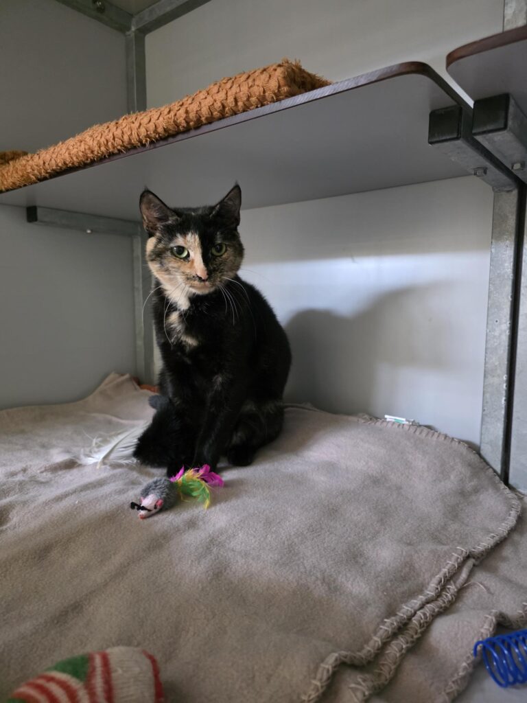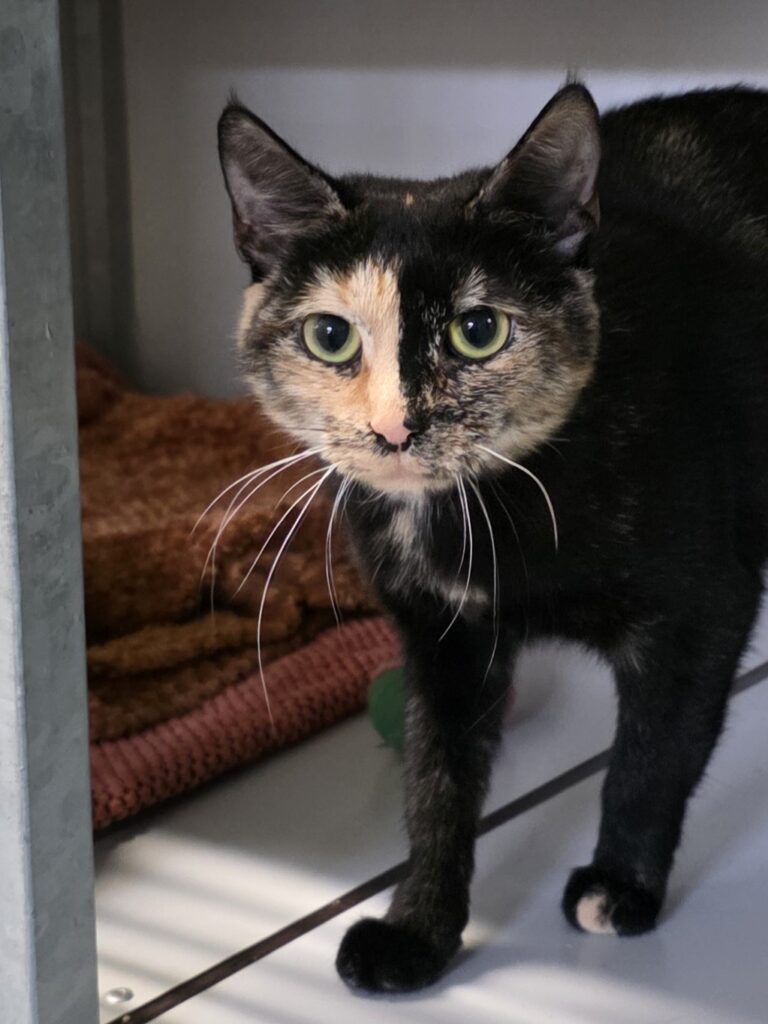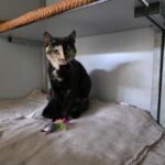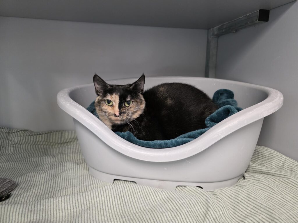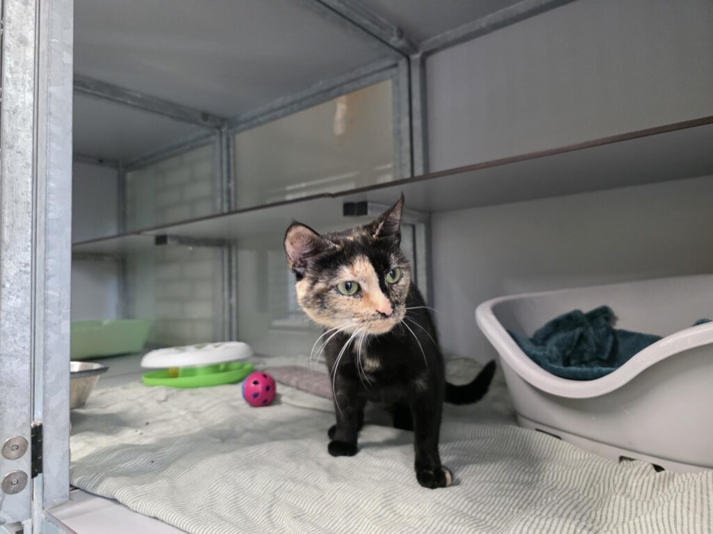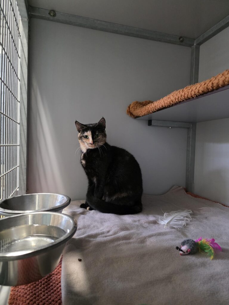 Toen ze in ons asiel binnen kwam had ze 4 schattige kleine baby’s bij zich. Fantasia wilde niets van ons weten en beschermde haar koters door flink naar ons te blazen, spugen en uitte vallen. Toen ze door kreeg dat dit niet veel angst in boezemde bij ons, droop ze elke keer af en liet ons met argwaan kijkende ogen haar hok schoonmaken, haar baby’s oppakken en knuffelen en eten neer zetten. Gelukkig hebben haar kittens zich nooit wat aangetrokken van haar gedrag naar ons toe. Zij zijn allen opgegroeid tot hele blije en leuke kittens en hebben ondertussen een huisje gevonden.