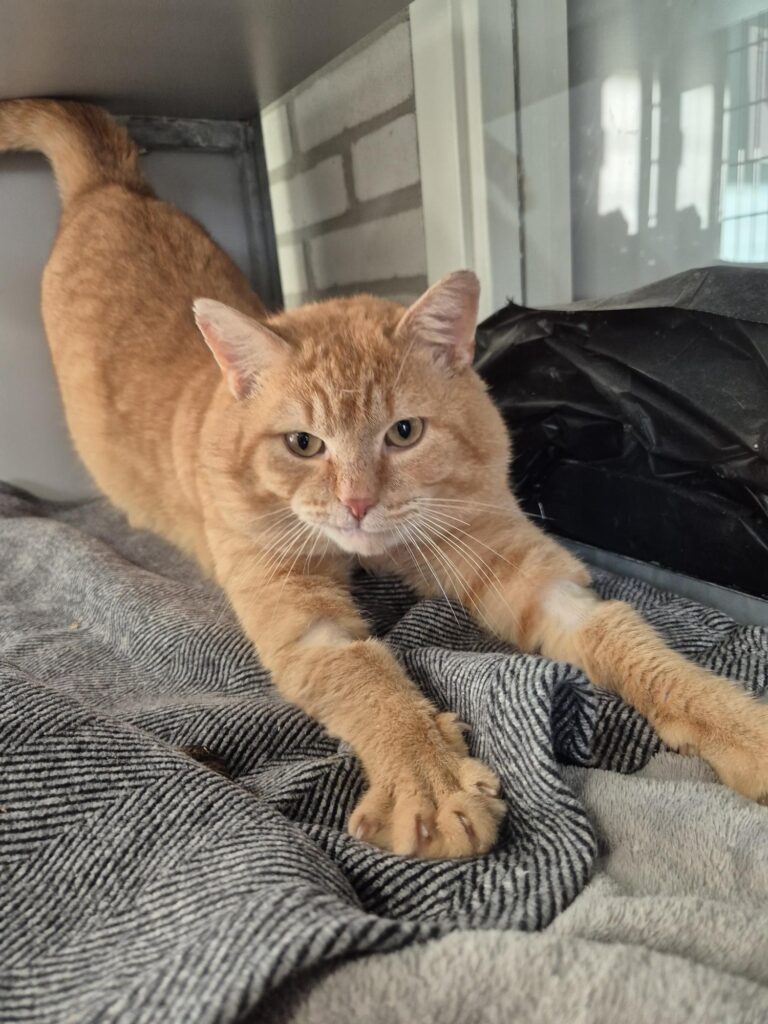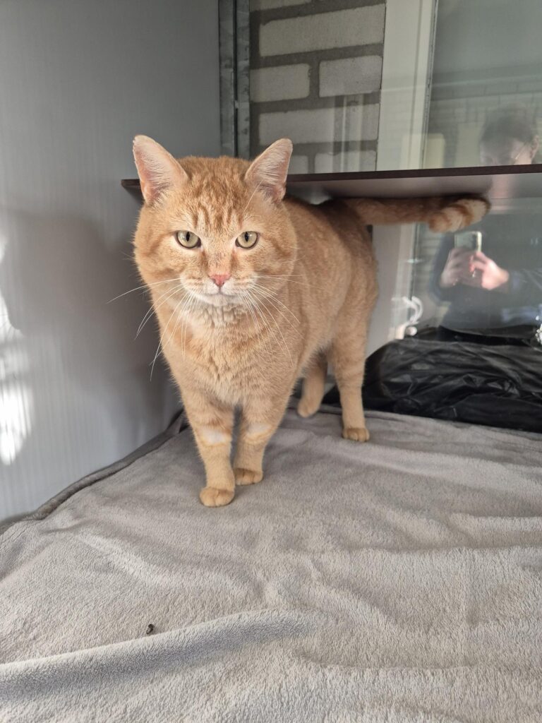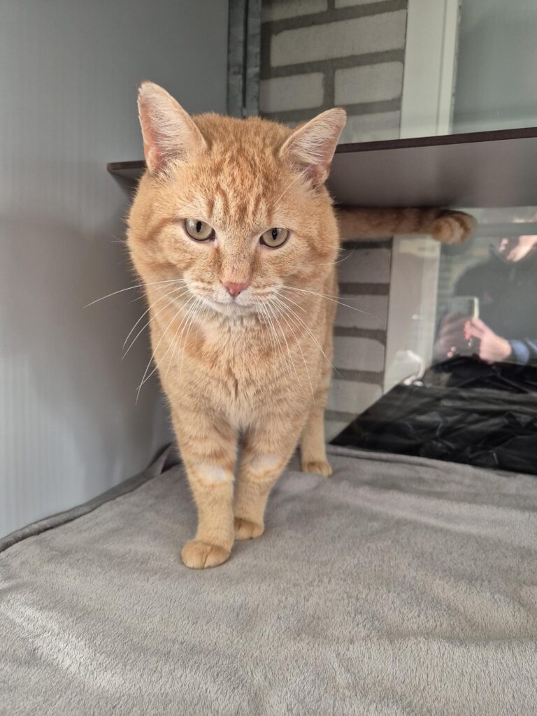 Gareth is een voorzichtige jonge man. Hij vind het alles nog een beetje spannend maar zodra hij door heeft dat je hem heerlijke hoofdmassages geeft dan geniet hij er onwijs van. Doordat er bij Gareth een tandje is getrokken moest hij een paar controles om te kijken of het goed aan het genezen was. Hierdoor vind hij het wat spannender in het begin om geaaid te worden. Het plekje waar de tand is getrokken ziet er goed uit. Hij heeft kalen plekjes op zijn pootjes en hals omdat er bij hem bloed is geprikt. Het bloedonderzoek was helemaal in orde. Het haar gaat vanzelf weer aan groeien.