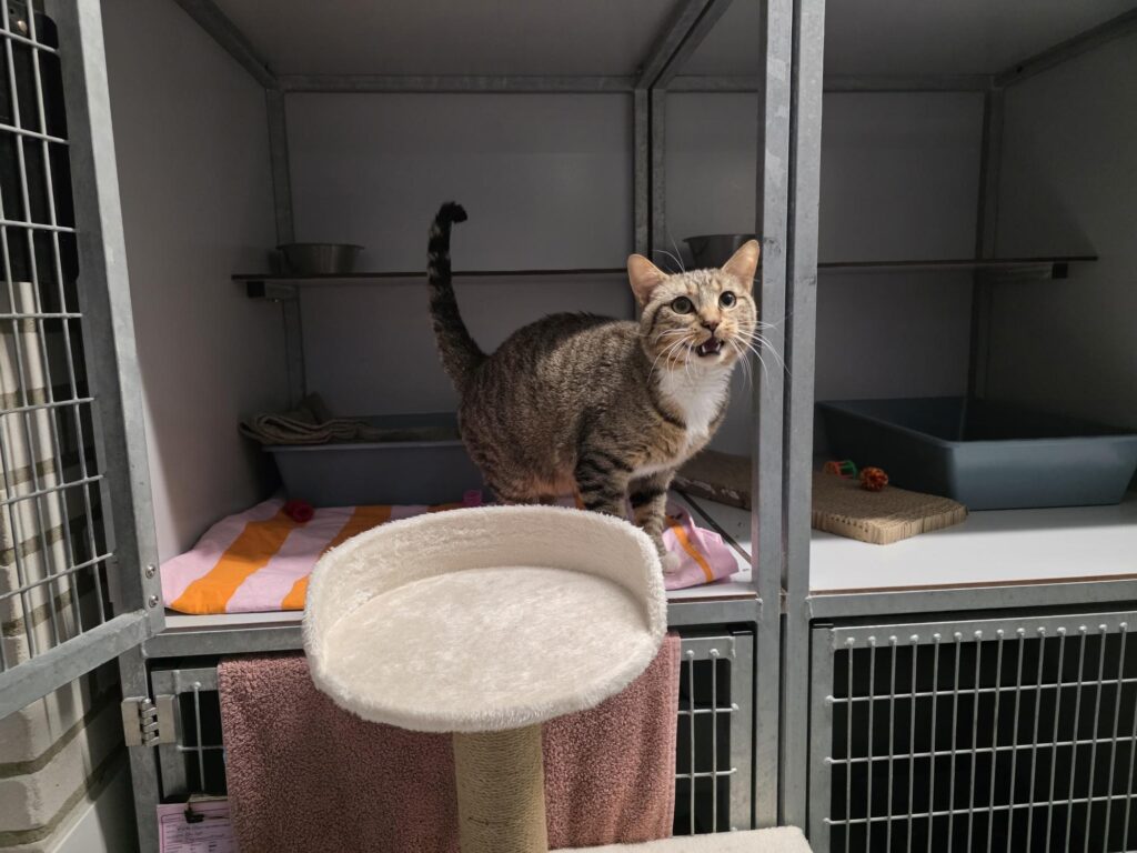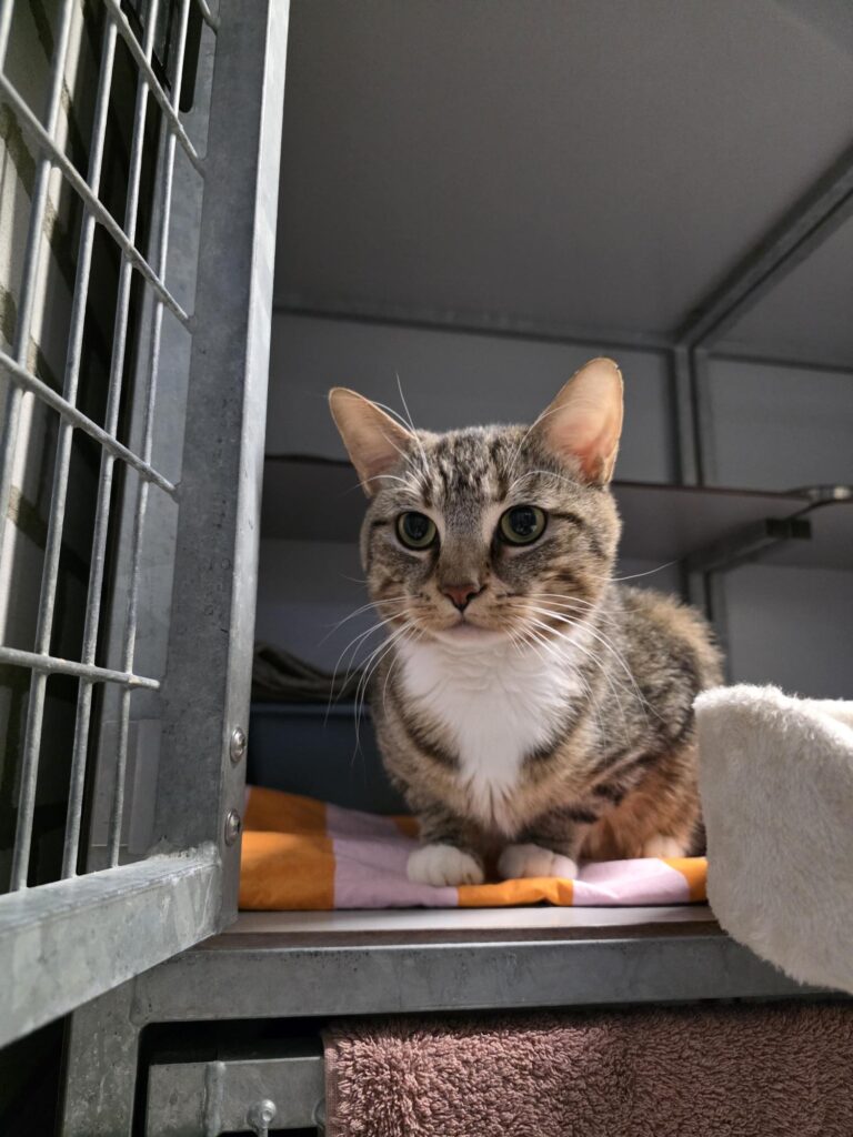 Mauwa vind mensen nog wel erg spannend. Hij komt in je buurt maar laat zich nog niet aaien.
