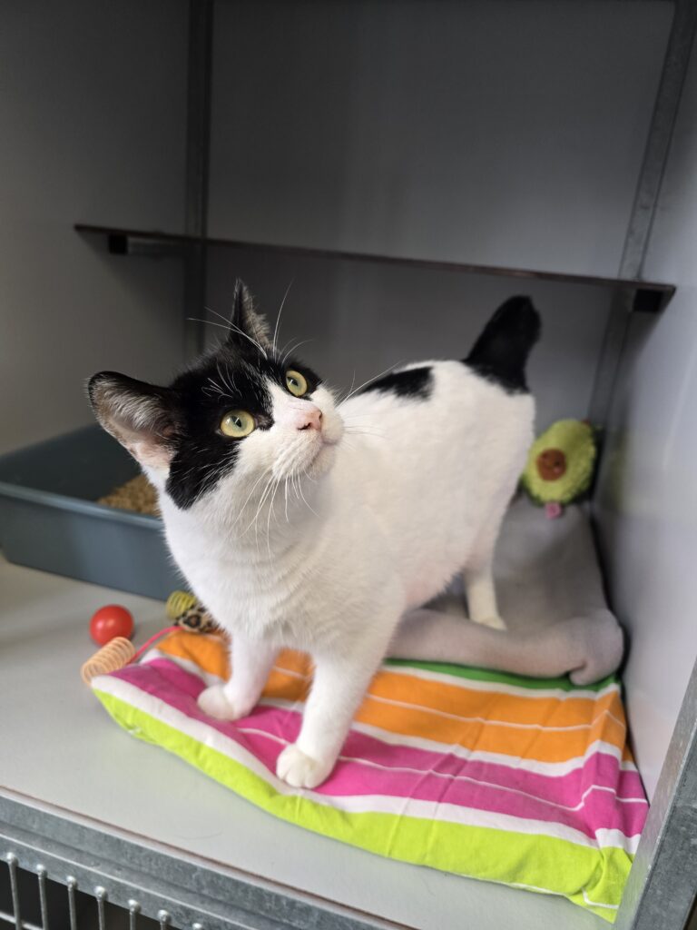 Lutti is een bijzondere verschijning met zijn zwarte zorro-masker en geheel gitzwarte staart! Hij is in het begin wat onzeker, maar als hij je eenmaal kent, wil hij graag aandacht. Deze lieverd zal wel genoeg te doen moeten hebben, aangezien hij nog jong is!