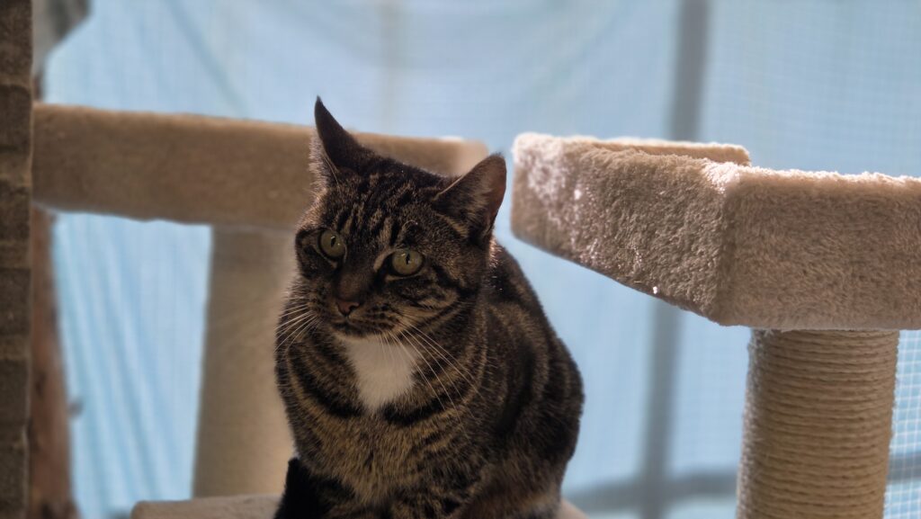 Dit is Vaya, is een lieve kat die niet alleen van knuffelen houdt, maar ook van buiten zijn.