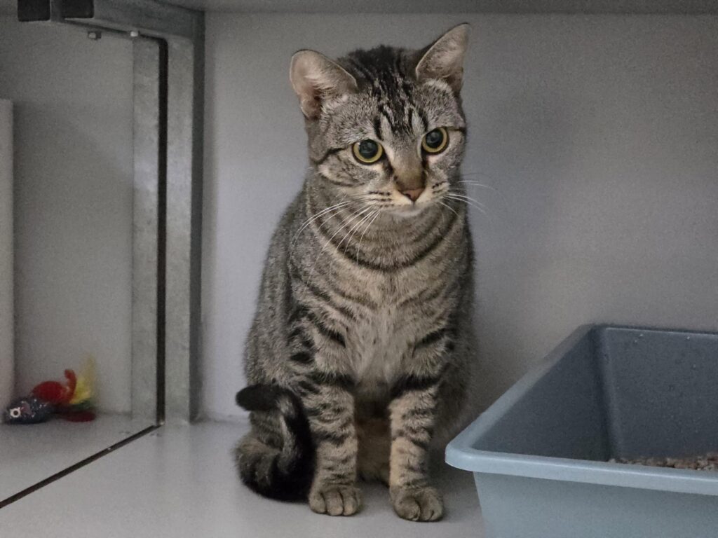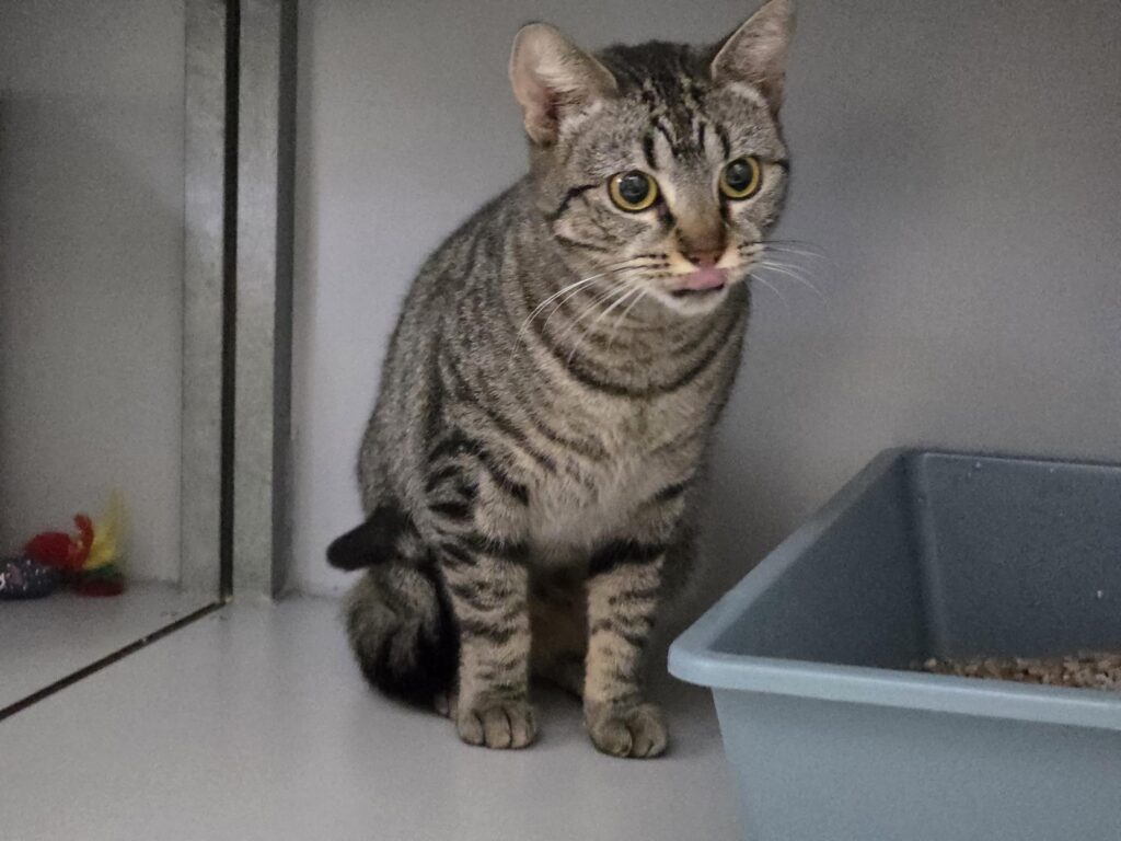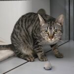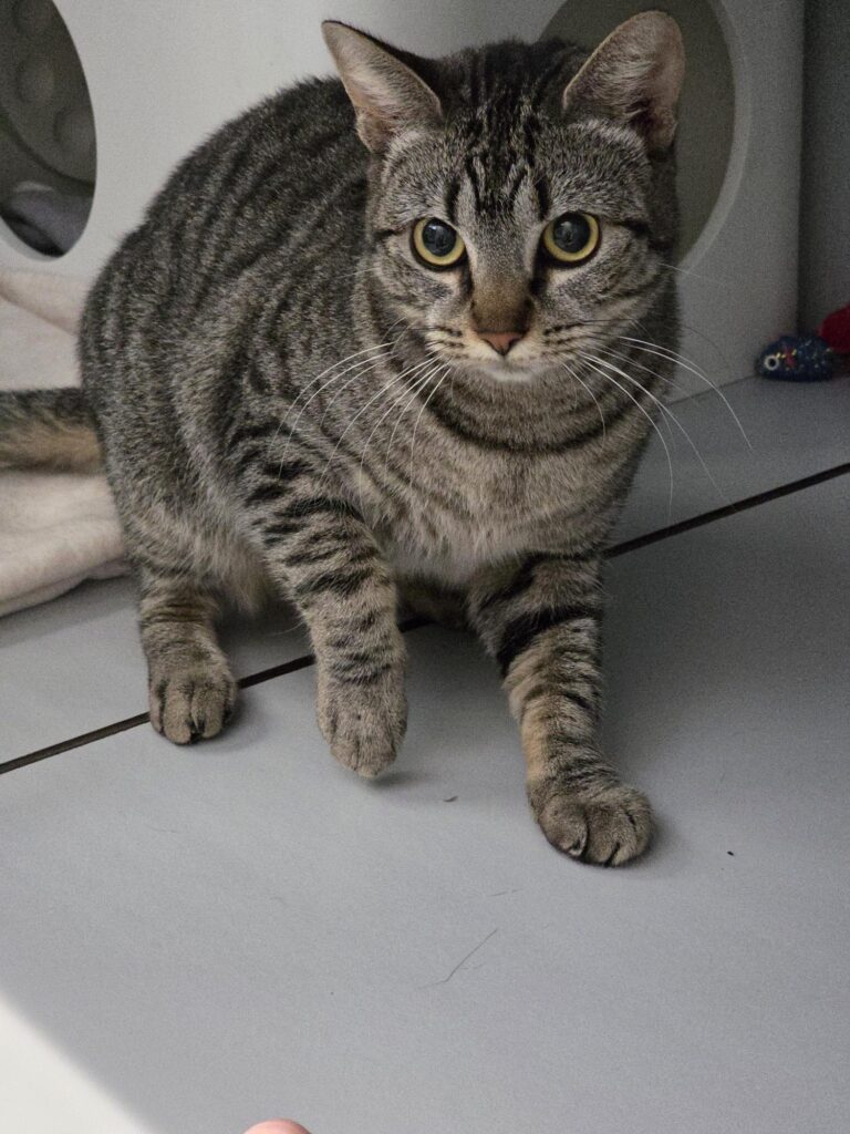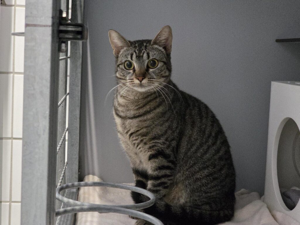 Steeds dapperder wordt dit meisje. Wama komt uit een huisje met meerdere katten. Ze is 1 van de laatste van dit klupje die er erg veel moeite mee heeft gehad dat ze in het asiel terecht is gekomen. Het heeft weken geduurd voordat ze uit haar schulpje kwam. Nog steeds is ze niet gediend van aaien. Maar onder tussen durft ze wel een snoepje aan te pakken uit de hand en wil ze graag haar hokje uit om de kamer te verkennen. Ook laat ze zich nu over halen om met een speel hengeltje te spelen. Toch blijft ze nog erg op haar hoede. Als het haar te eng word vlucht ze gauw haar hokje weer in. Sowieso laat ze zich niet zien of verleiden tot contact als je vreemd bent voor haar. Alleen bij de vaste verzorgers laat ze op dit moment iets van haar karaktertje zien: