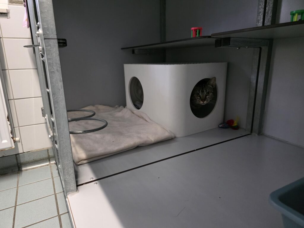 In begin wilde ze niets weten van haar huisgenootjes. Ondertussen lijkt ze ze te herkennen en komt ze sneller te voorschijn als haar vrienden even in haar hokje komen kijken. Ondanks dat, zijn wij niet opzoek naar een huis met een andere kat. In beginsel liet zij namelijk wel overduidelijk merken niet gediend te zijn van andere katten. Een geheel vreemde kat uit een ander huis zou zij zomaar niet kunnen accepteren. Dit probleem zoeken wij dan ook liever niet op.