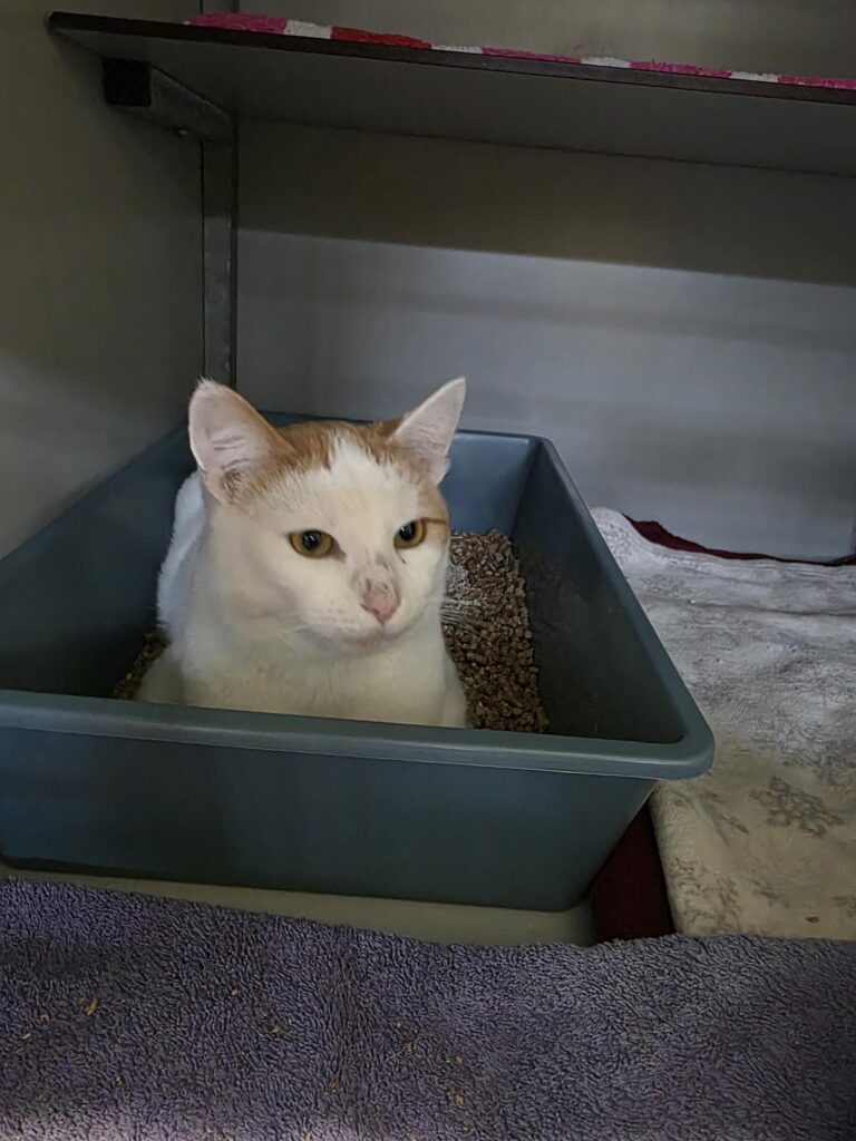Wanter heeft nog wat krasjes op zijn neus. Dit is al stukken minder dan bij binnenkomst. Waarschijnlijk boterde het niet zo met andere katten in zijn vorige huis. Met Selfie kan hij het gelukkig wel goed vinden.
