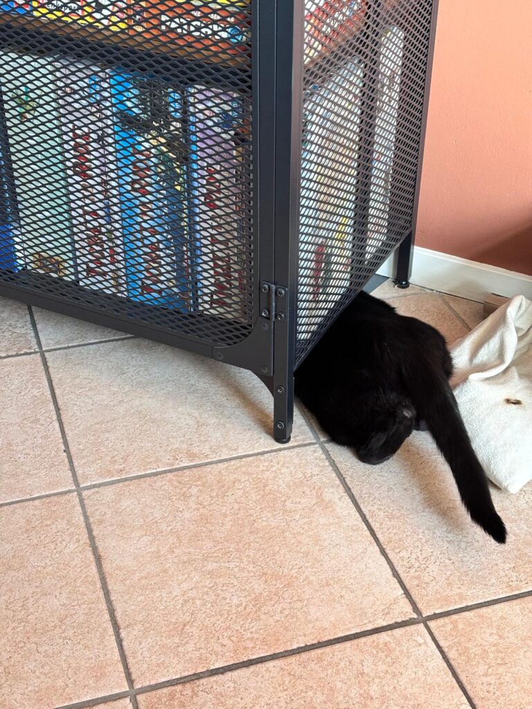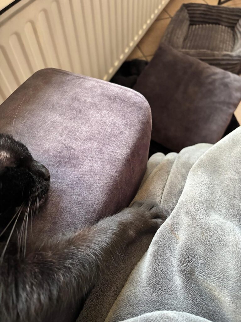 Piano is echt de ideale poes en ze gedraagt zich sinds het eerste moment al voorbeeldig! We begrijpen echt niet hoe zo’n goed opgevoede kat ooit op straat beland is. Ze is onze eerste kat en we hadden overal rekening mee gehouden: een kapotte bank, een omgevallen kerstboom, Lego die omgegooid wordt, ontsnappingen… maar het bleek dat we voor niks bang waren. Het enige wat ze doet met de kerstboom is zich er onder of achter verstoppen, de kerstballen interesseren haar precies niks. En de bank? Die is vooral ideaal om op te liggen, onder te schuilen of overheen te rennen bij haar dagelijkse zoomies. Is het een schootkat? Dat (nog) niet, maar ze ligt wél vaak tegen een van ons of tegen ons allebei aan.